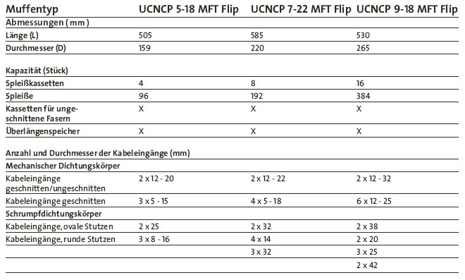 konzipiert. Die UCNCP-Muffen mit MFT-Spleißkassette